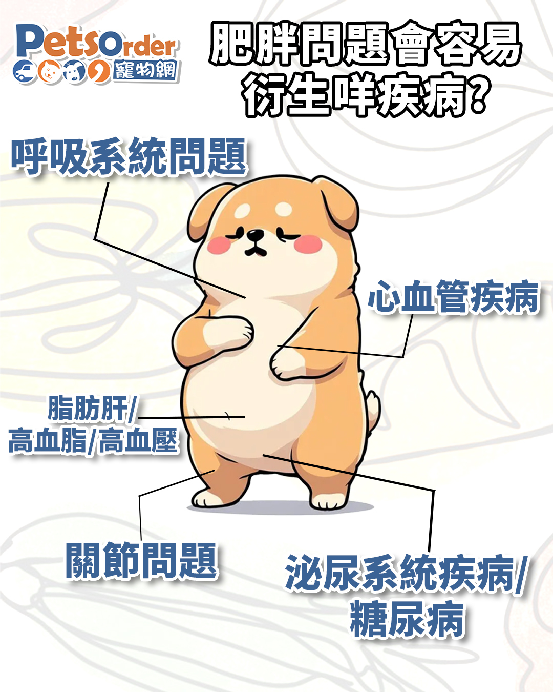 肥胖會對毛孩身體造成傷害。以下係五大常見嘅健康風險: