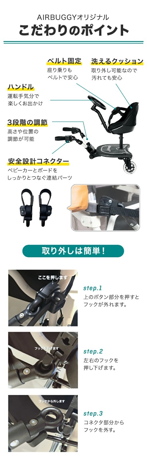 AirBuggy 獨創的 2WAY BOARD EX 配備了帶手柄的椅子