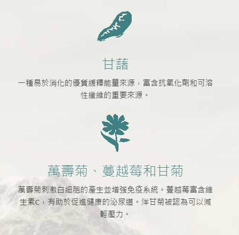 Marigold stimulates white blood cell production and strengthens the immune system. Cranberry is rich in Vitamin C and helps promote a healthy urinary tract. Camomile is thought to reduce stress.