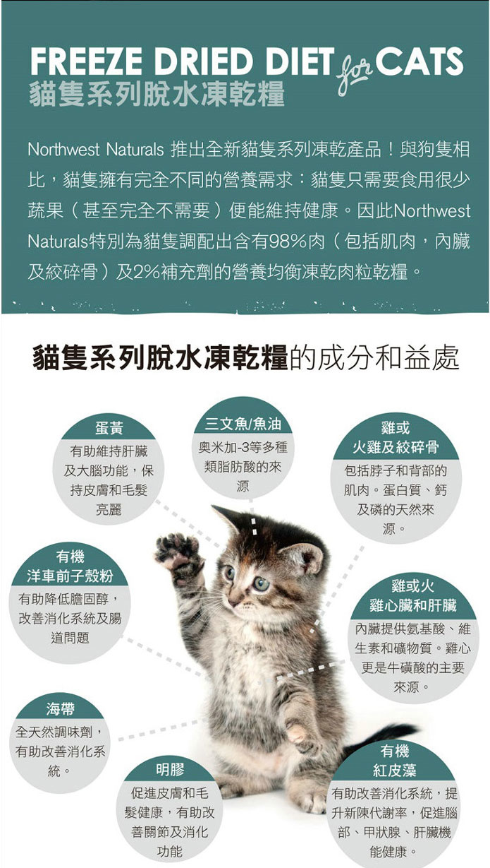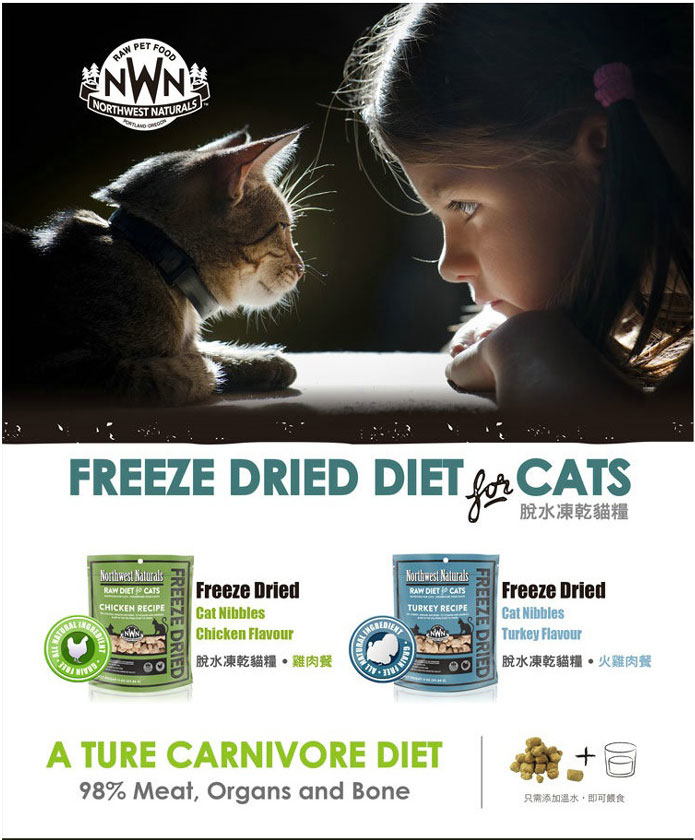 Northwest Naturals™諾為是基於最先進的科學和生鮮原料配方原則,精心配製的一款純天然無殼物凍乾食品。為寵物增強健康、延長壽命提供很大的幫助,而且這是一種簡便餵食的膳食選擇。我們相信生鮮食品餵養寵物的前提下,能提高它們的生活質量。我們的使命就是積極孕育不同體型或活躍程度的愛寵們。