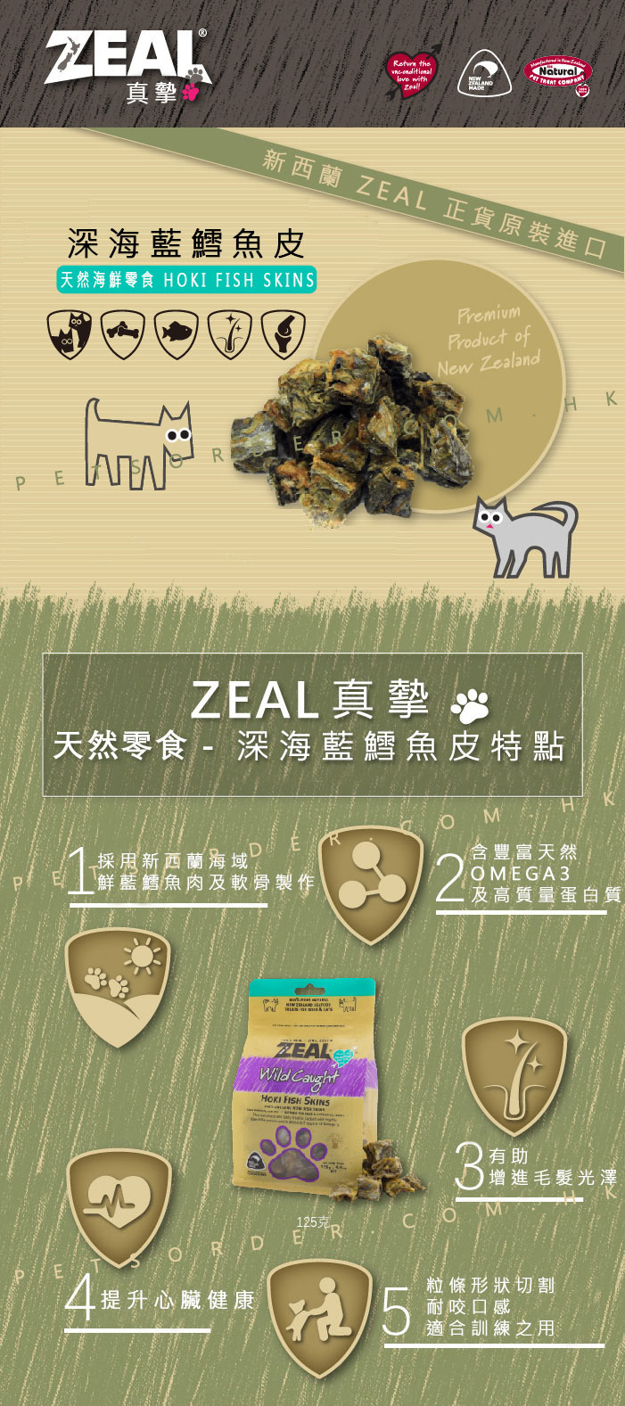 魚皮取自在紐西蘭潔淨海洋中野生捕獲的藍鱈魚