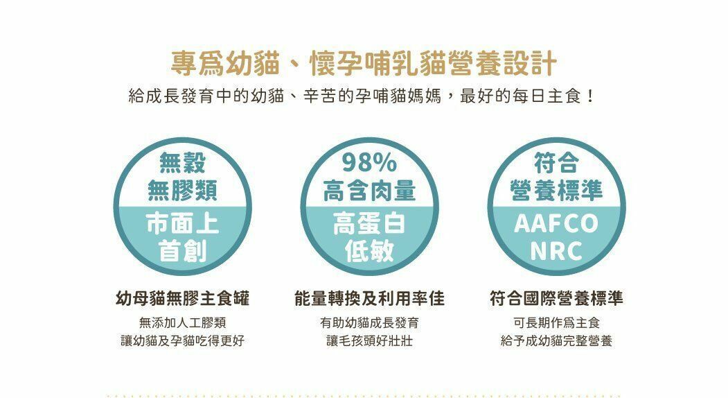 給成長發育中的幼貓、辛苦的孕哺貓媽媽,提供最好的每日主食