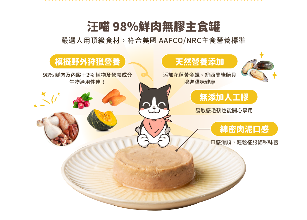 • 添加花蓮黃金蜆、紐西蘭綠貽貝增進貓咪健康
