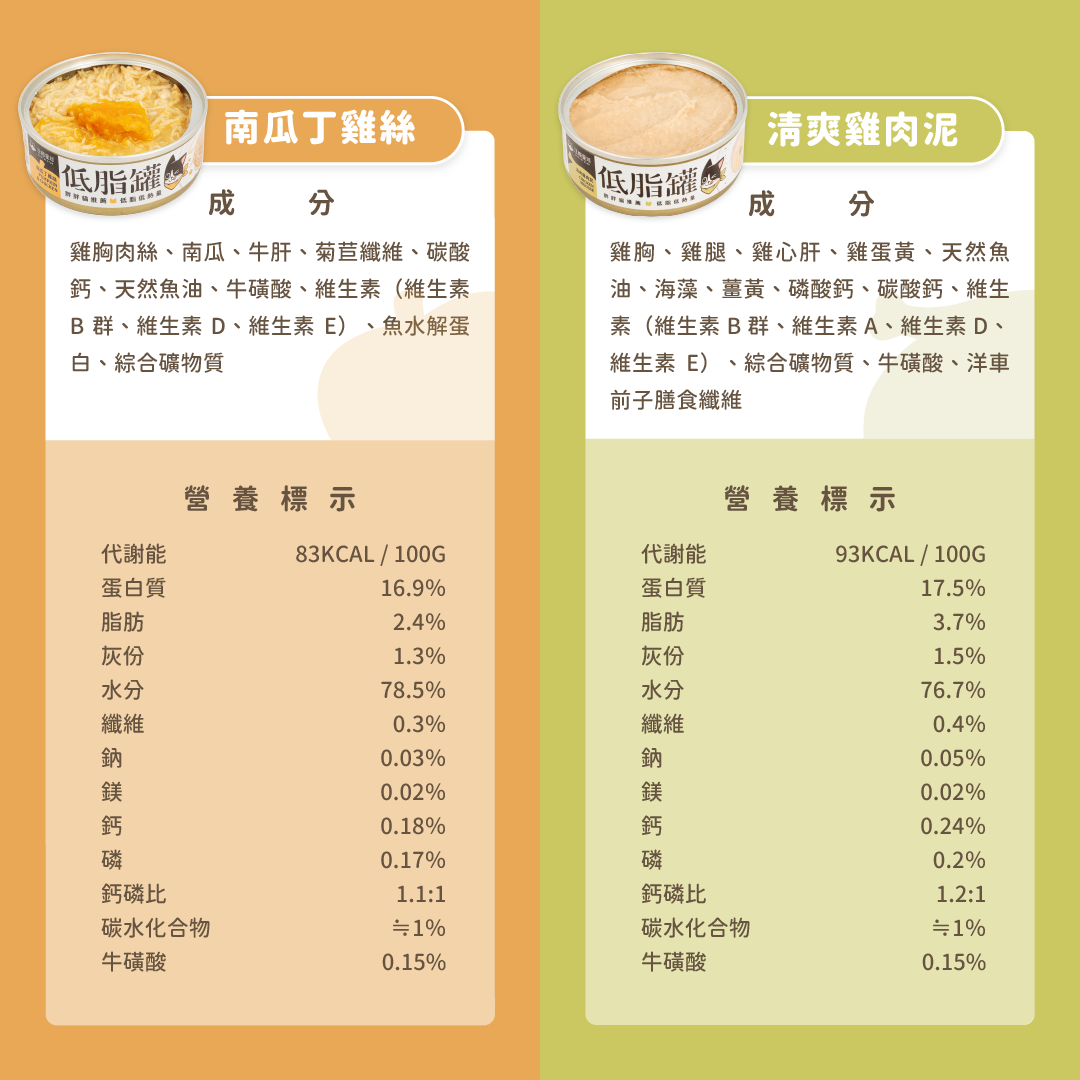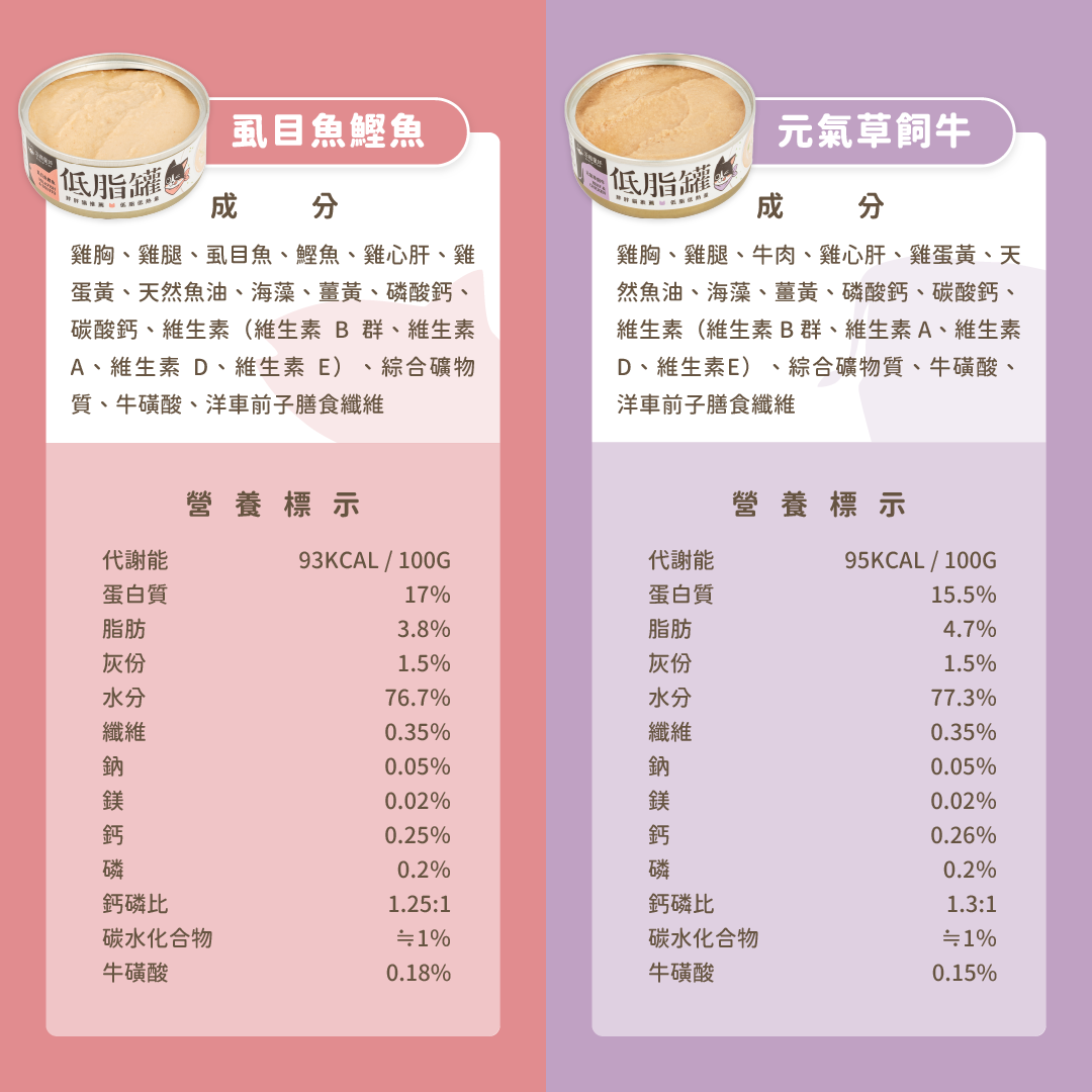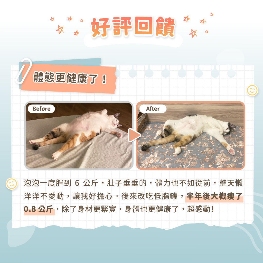 • 特選低脂食材,打造貓咪低卡餐