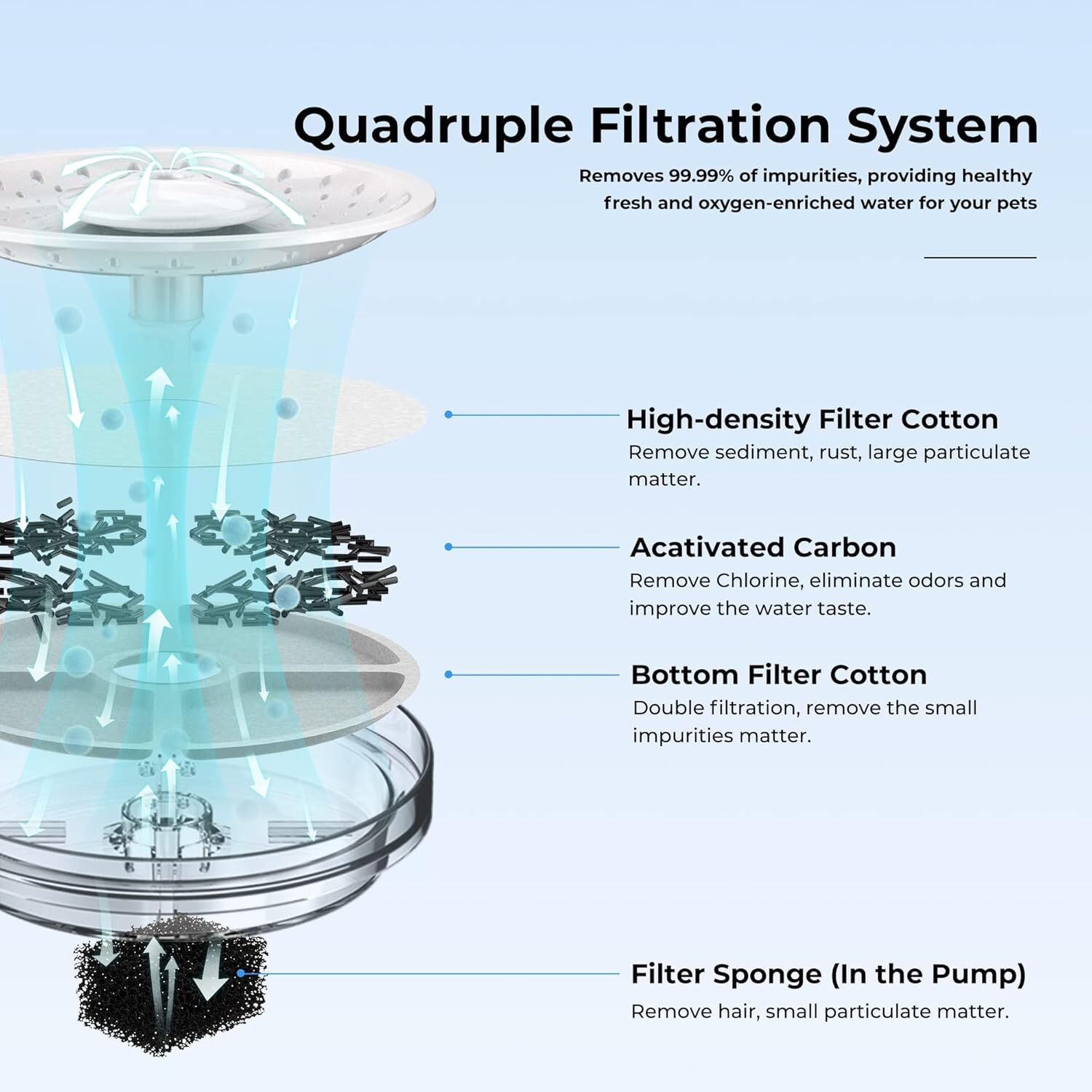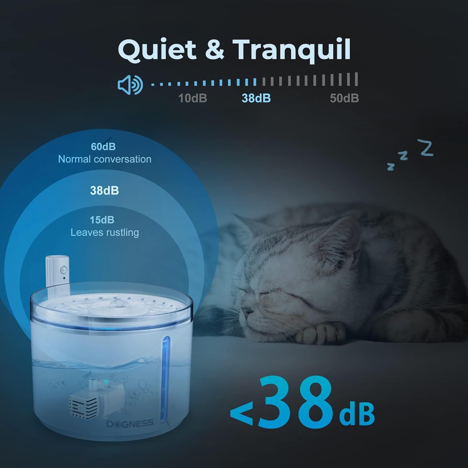 紅外線感應運動偵測:DOGNESS 可充電貓咪飲水機配備紅外線感應器,當貓咪進入飲水機 135° 範圍內(3.28 英尺)時,飲水機會自動啟動出水。貓咪離開後,出水會自動停止。如果您的愛貓長時間沒有靠近,飲水機將每半小時自動出水一次,以保持水質新鮮。