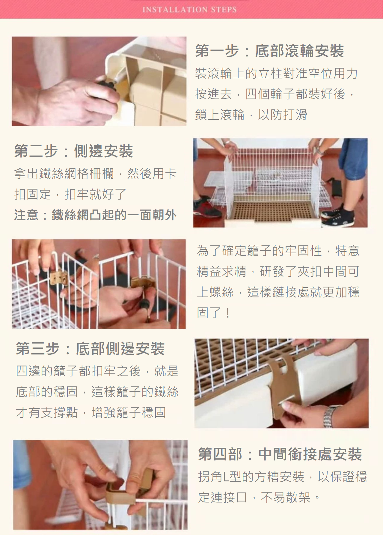 籠子底部附有腳輪移動更輕鬆