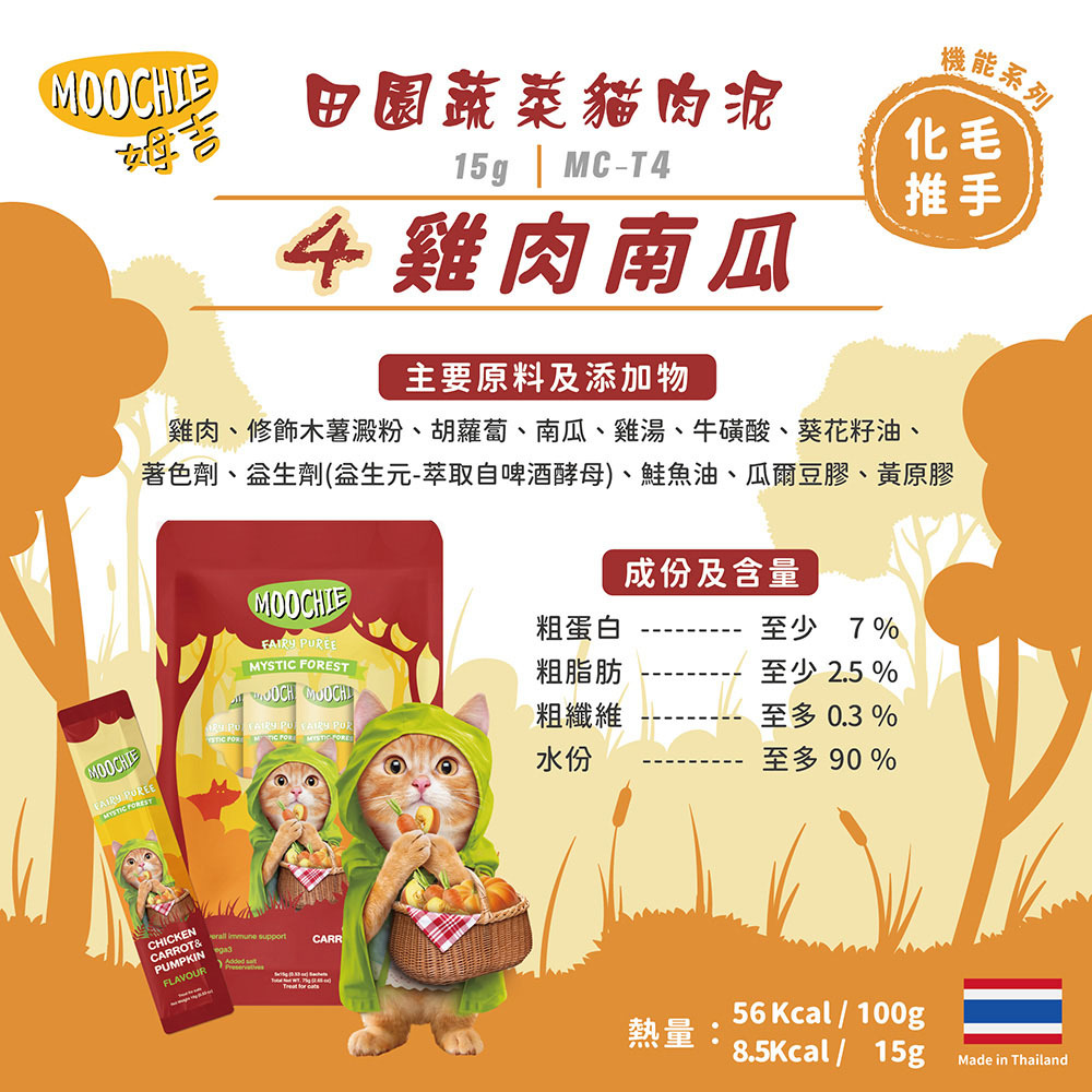 Moochie 貓小食 唧唧醬.雞肉+紅蘿蔔+南瓜肉泥15gx5支裝
