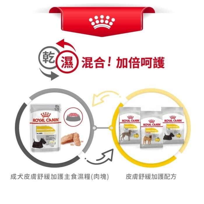 可與皇家犬糧德曼舒緩乾糧混合食用,豐富口感,滿足挑食狗狗的需求。