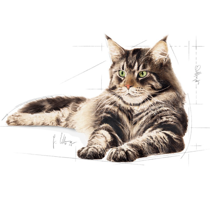 緬因貓毛髮較長,十分濃密,並帶有柔軟纖細的底毛。 配方含特定營養素組合,包括氨基酸,維生素,Ω-3及Ω-6脂肪酸,有助於保持皮膚和毛髮健康
