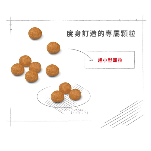 超小顆粒,特別適合4公斤以下超小型犬下頜。 獨特配方,滿足超小型犬的挑剔胃口