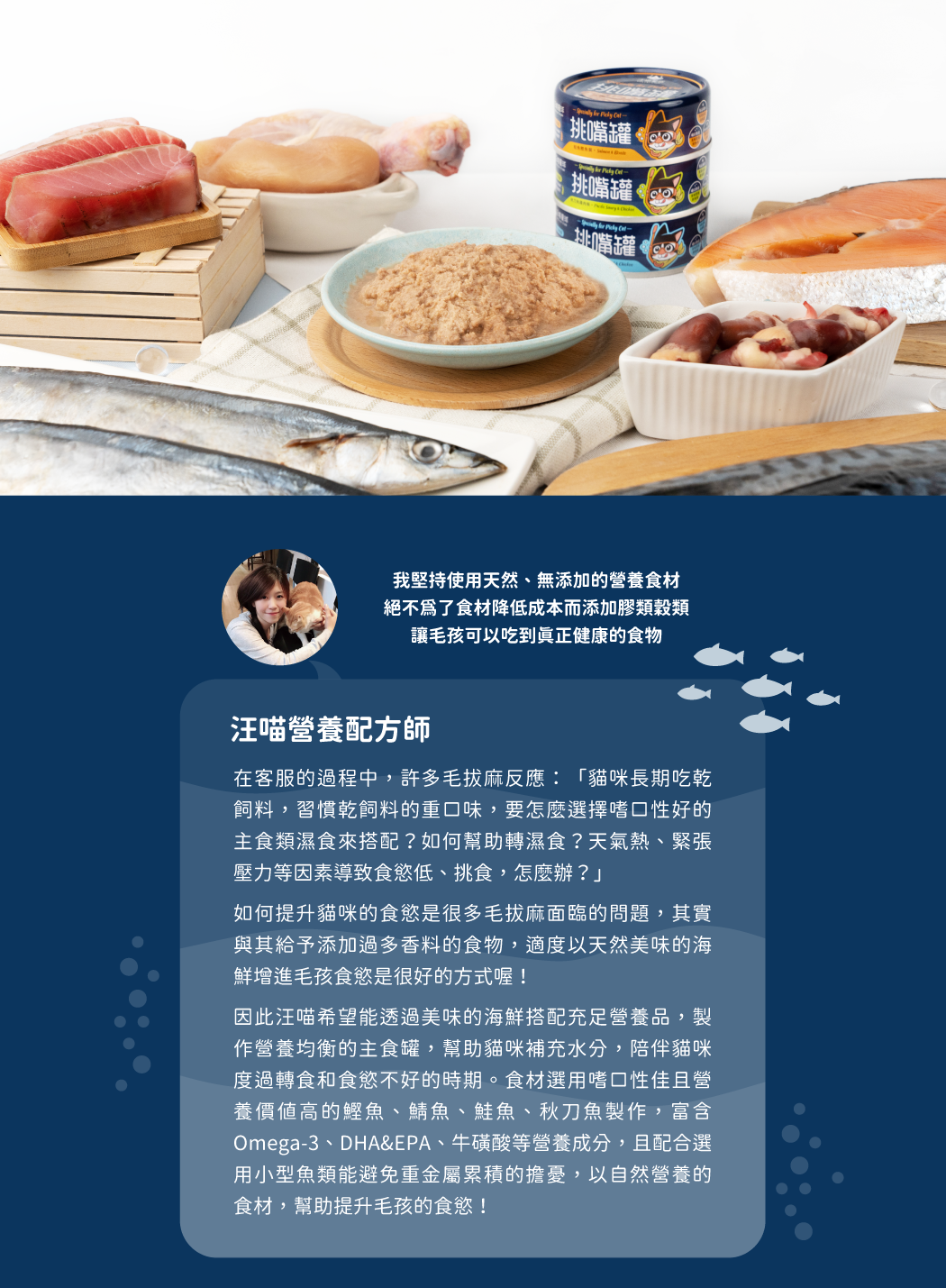 • 專為熱愛海鮮毛孩打造的全營養主食罐