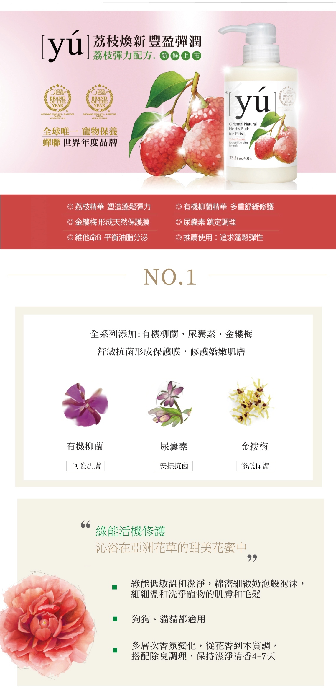 ◆持續保持肌膚與毛髮的清爽。