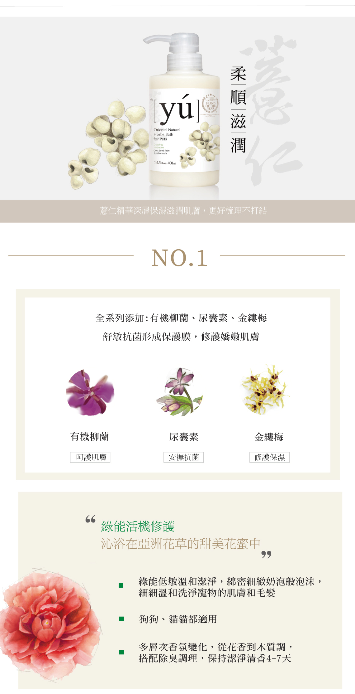 ◆ 薏仁精華深層保濕滋潤肌膚,好梳理不打結。